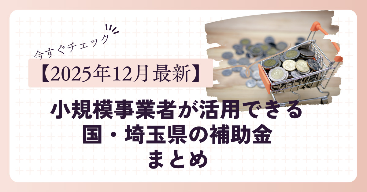 今月(12月)時点で確認しておきたい、国の補助金と埼玉県内の地域補助金をまとめました。