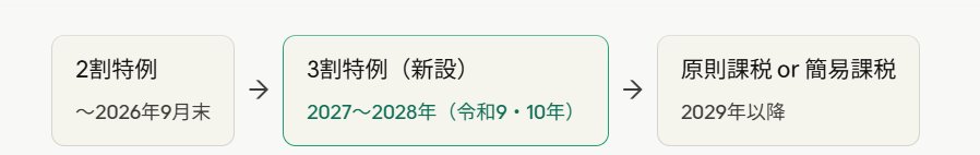 計算がシンプルで使い勝手は良いですが、2028年9月末には終わり、その後は原則として通常の課税計算か簡易課税に移行することになります。